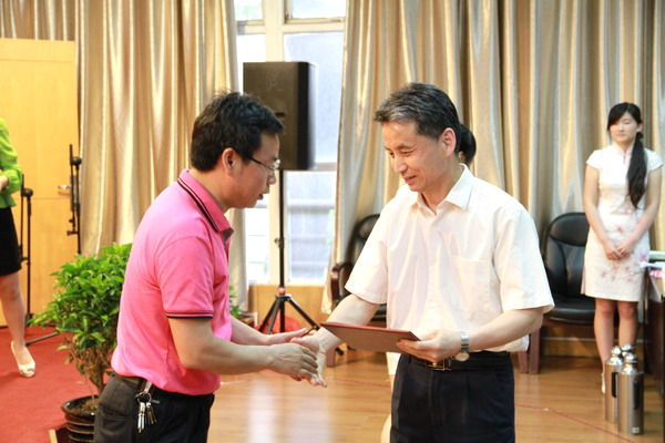 校党委常委、党政办公室主任张海军为获得“同心奉献”演讲与朗诵比赛二等奖的选手颁奖