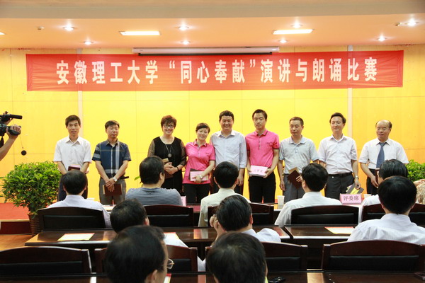 “同心奉献”演讲与朗诵比赛是为贯彻落实《关于在我校统一战线成员中开展“同心奉献”活动的实施方案》精神而开展的系列活动之一。本次比赛是以“同心奉献”为主题,紧密结合同心建言献策、同心培养人才、同心科学研究、同心服务社会。比赛中,选手们或激情澎湃,或委婉深情,用最真挚的感情,最优美的语言,讲述了一首首感人的故事,一个个鲜活的人物。表达了与中国共产党长期共存、互相监督、肝胆相照,荣辱与共的决心。同时,也体现了作为民主党派成员和无党派代表人士在为学校科学发展和地方经济建设中发挥的积极作用。经过激烈角逐,民进安徽理工大学支部的崔琴荣获了演讲组一等奖,民革田区二支部的吴传彬荣获了朗诵组一等奖。农工党安徽理工大学支部的郑立新、九三学社安徽理工大学支社的郑钢丰荣获了演讲组二等奖,九三学社安徽理工大学支社的彭天好等十人、校党外知识分子联谊会的邓云荣获了朗诵组二等奖。致公党安徽理工大学支部的谢兴华、九三学社安徽理工大学支社的王兴阵、校党外知识分子联谊会的吴荣新、民建田区二支部的程国君、民革安徽理工大学支部的杨德传荣获了演讲组三等奖,民进安徽理工大学支部的朱琦、九三学社安徽理工大学支社的韩东如、致公党安徽理工大学支部的穆莉莉、尚睿、民盟安徽理工大学支部的许喜红荣获了朗诵组三等奖。