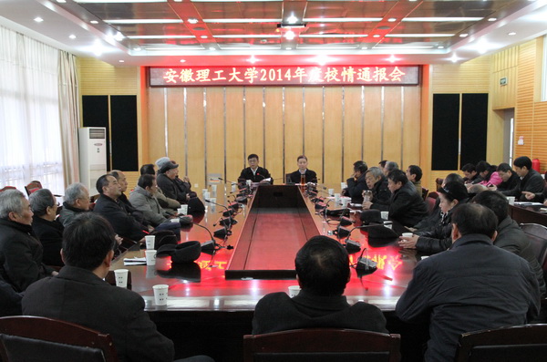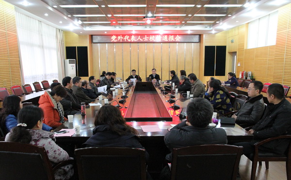 1月23日上午和下午,在校本部图书馆北侧会议室,学校分别召开了离退休人员、党外代表人士2014年度校情通报会。校党委书记颜事龙、党委副书记王洪出席了会议,校离退休老同志,省文史馆馆员、各级人大代表和政协委员、各民主党派基层组织负责人、校党外知识分子联谊会负责人以及有关职能部门负责人参加了会议。