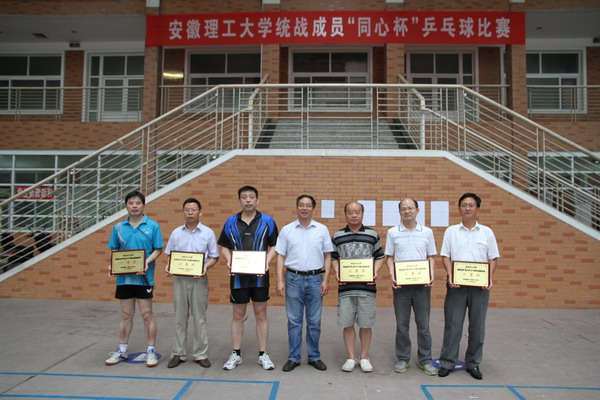校各民主党派基层组织和党外知识分子联谊会共组成了6个代表队参加了团体比赛,34位统战成员参加了男子单打和女子单打比赛。比赛现场气氛热烈,高潮迭起,精彩的比赛不断引来热烈的喝彩声和兴奋的“好球”声。统战成员在比赛中挥汗如雨,顽强拼搏,尤其是九三学社80岁的刘重甫老师更是老当益壮,他那不到最后一刻决不放弃的精神深深打动了在场的每一个人。最终,经过激烈角逐,校党外知识分子联谊会代表队荣获团体赛一等奖,九三学社安徽理工大学支社和民进安徽理工大学支部获得二等奖,致公党安徽理工大学支部、民盟安徽理工大学支部和民革安徽理工大学支部获得三等奖。荣获男子单打前八名的分别是张新(校知联会)、刘重甫(九三学社)、张军(校知联会)、方贤进(校知联会)、张立祥(民进)、郑刚丰(九三学社)、张顺香(九三学社)、吕松(校知联会)。荣获女子单打前四名的分别是刘琦(农工党)、宋桂霞(农工党)、刘宏(民革)、韩东如(九三学社)。